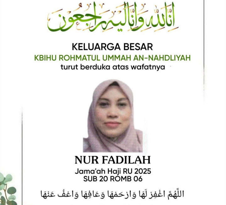 "Pihak pemerintah menegaskan bahwa semua hak dari almarhomah akan terpenuhi, termasuk penyelenggaraan ibadah haji pengganti serta pencairan asuransi sesuai dengan peraturan yang ada," tandasnya.